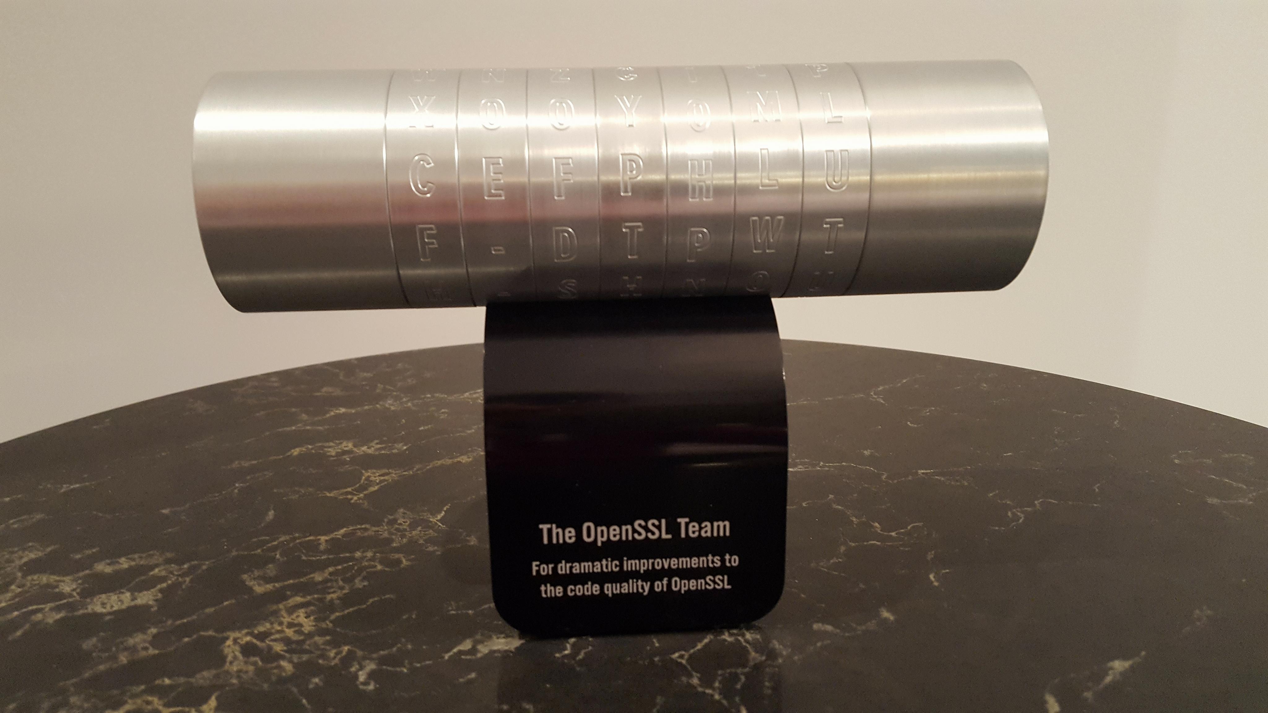 The team were selected by the selection committee “for dramatic improvements to the code quality of OpenSSL”. You can read the press release here.